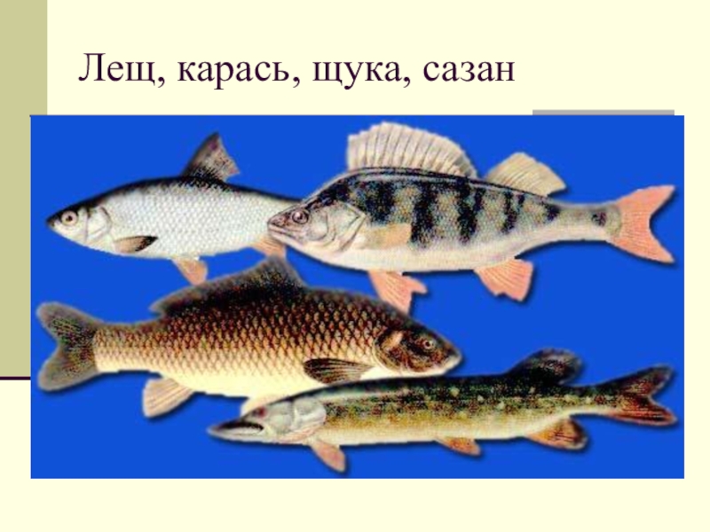 Слайд 12Лещ, карась, щука, сазан