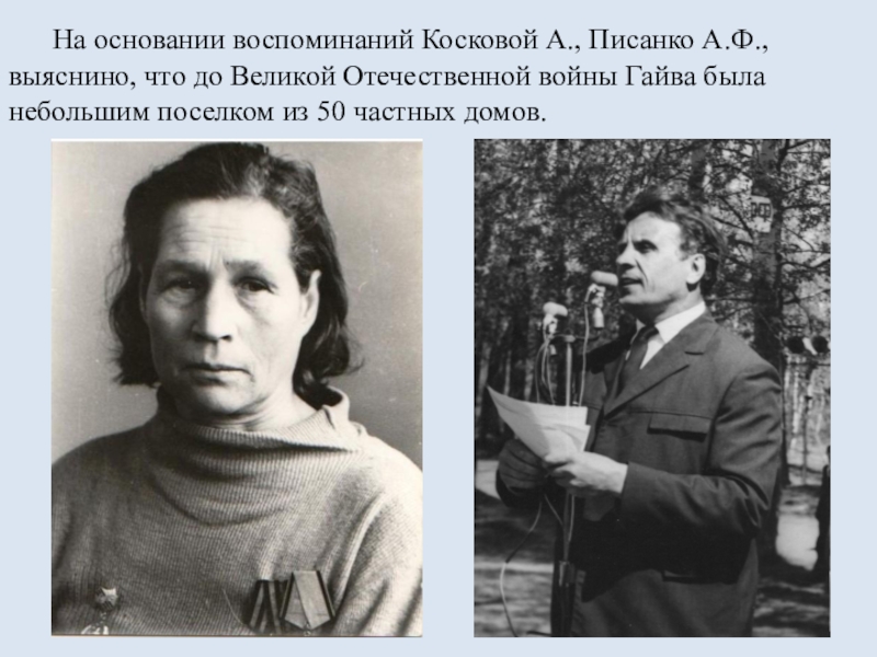 Слайд 8 На основании воспоминаний Косковой А., Писанко А.Ф., выяснино, что до Великой