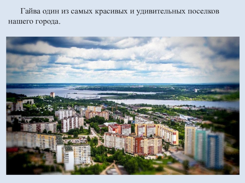 Слайд 2 Гайва один из самых красивых и удивительных поселков нашего города.
