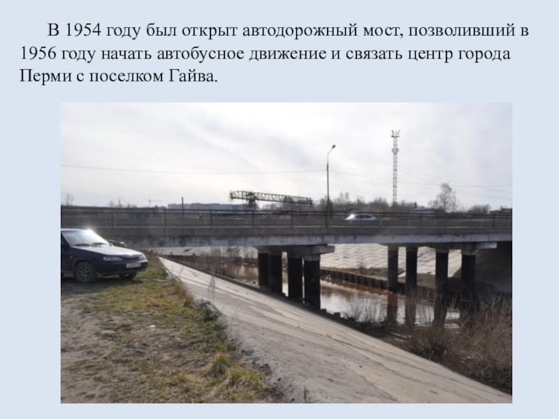 Слайд 15 В 1954 году был открыт автодорожный мост, позволивший в 1956 году