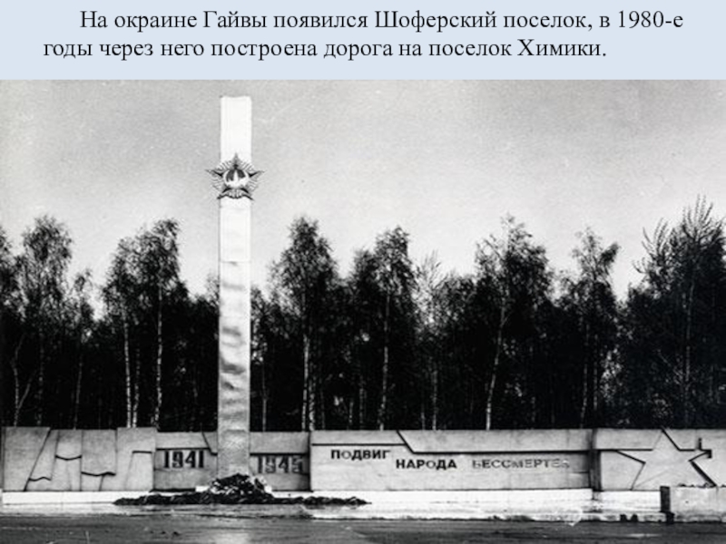 Слайд 13 На окраине Гайвы появился Шоферский поселок, в 1980-е годы через него