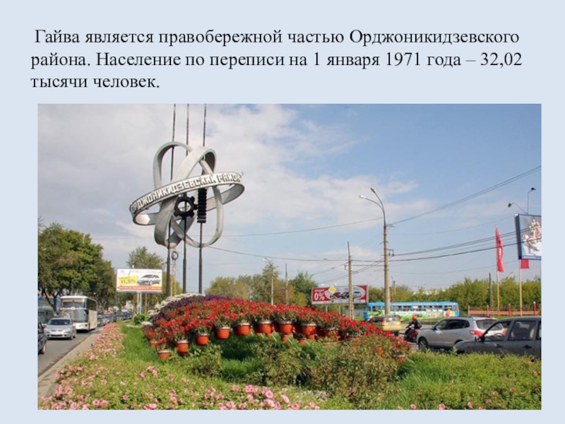 Слайд 3 Гайва является правобережной частью Орджоникидзевского района. Население по переписи на 1