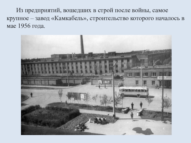 Из предприятий, вошедших в строй после войны, самое крупное – завод «Камкабель», строительство которого началось в мае