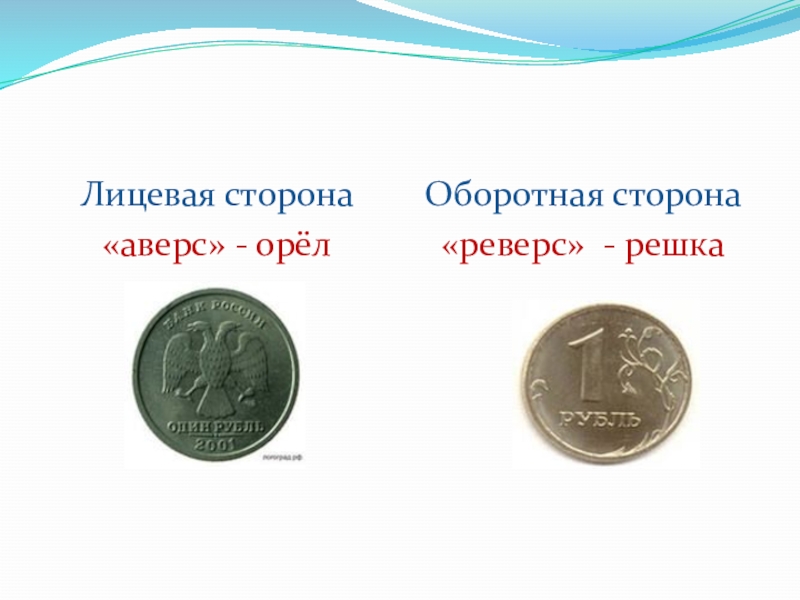 Лицевая сторона «аверс» - орёлОборотная сторона«реверс» - решка