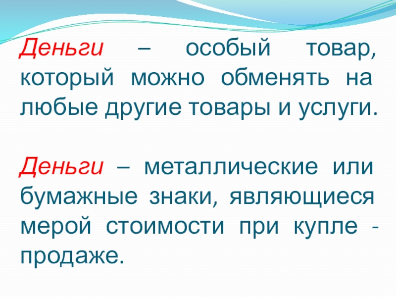 Слайд 21 Деньги – особый товар, который можно обменять на любые другие товары