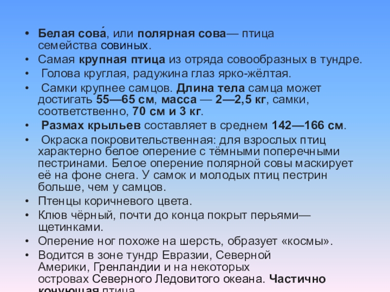 Презентация, доклад по окружающему миру на тему: Интересные факты из жизни полярной совы. Поэтапное рисование.