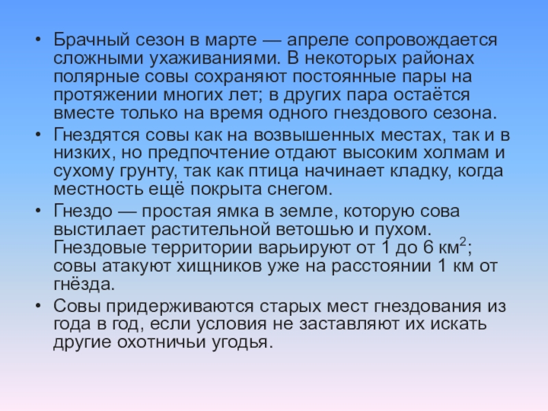 Слайд 10Брачный сезон в марте — апреле сопровождается сложными ухаживаниями. В некоторых районах