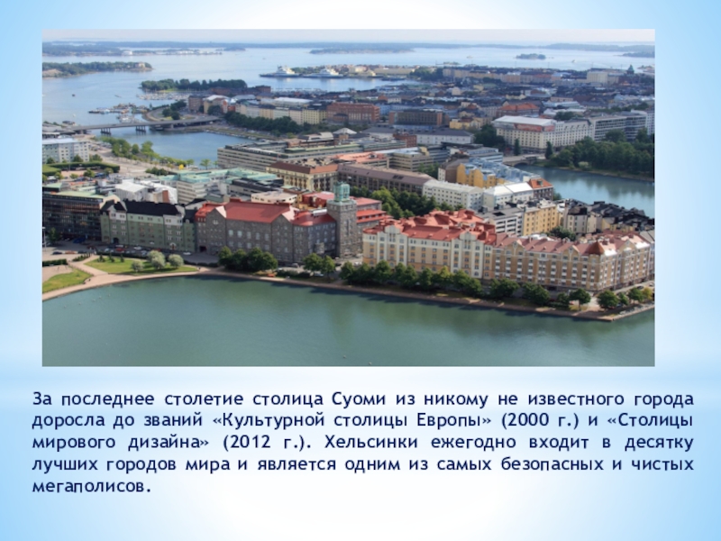 Слайд 8За последнее столетие столица Суоми из никому не известного города доросла