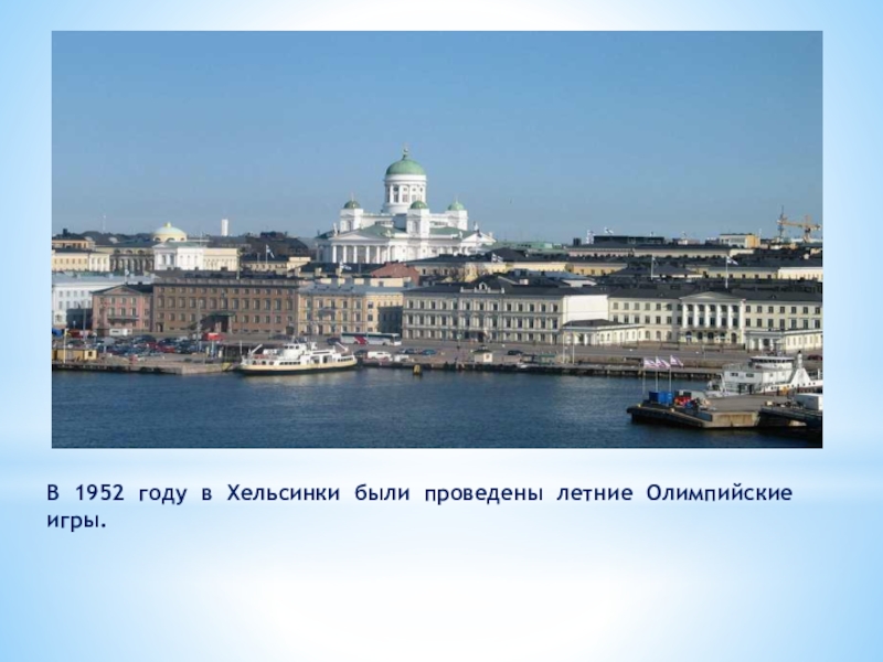 Слайд 5 В 1952 году в Хельсинки были проведены летние Олимпийские игры.