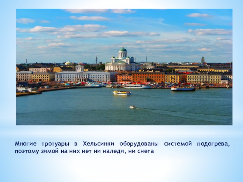 Слайд 7Многие тротуары в Хельсинки оборудованы системой подогрева, поэтому зимой на них