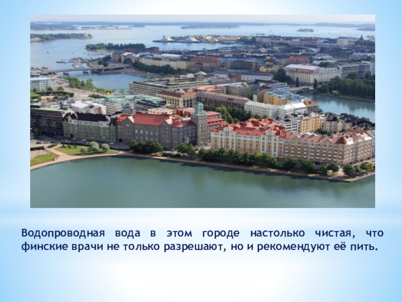 Слайд 6Водопроводная вода в этом городе настолько чистая, что финские врачи не
