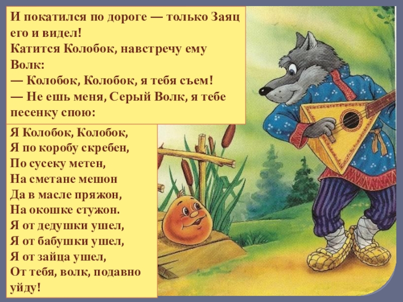 — Не ешь меня, Серый Волк, я тебе песенку спою: