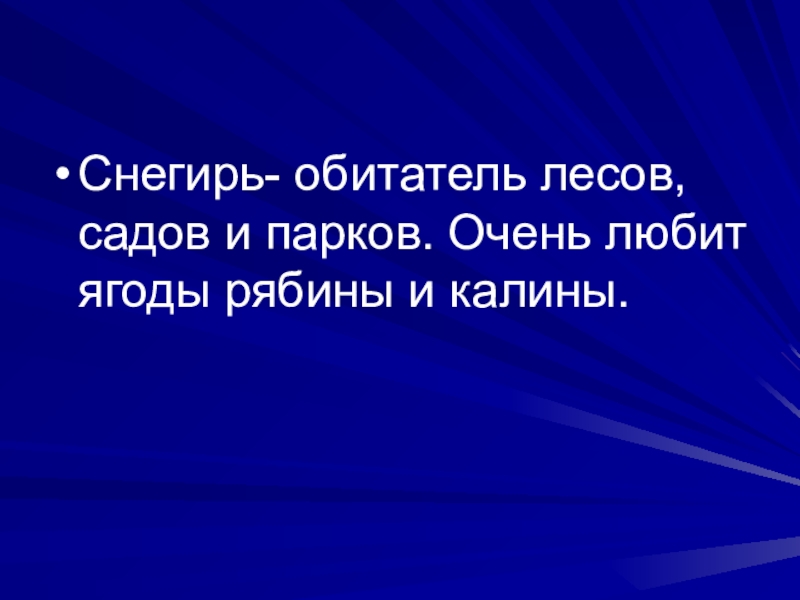 Слайд 10Снегирь- обитатель лесов, садов и парков. Очень любит ягоды рябины и