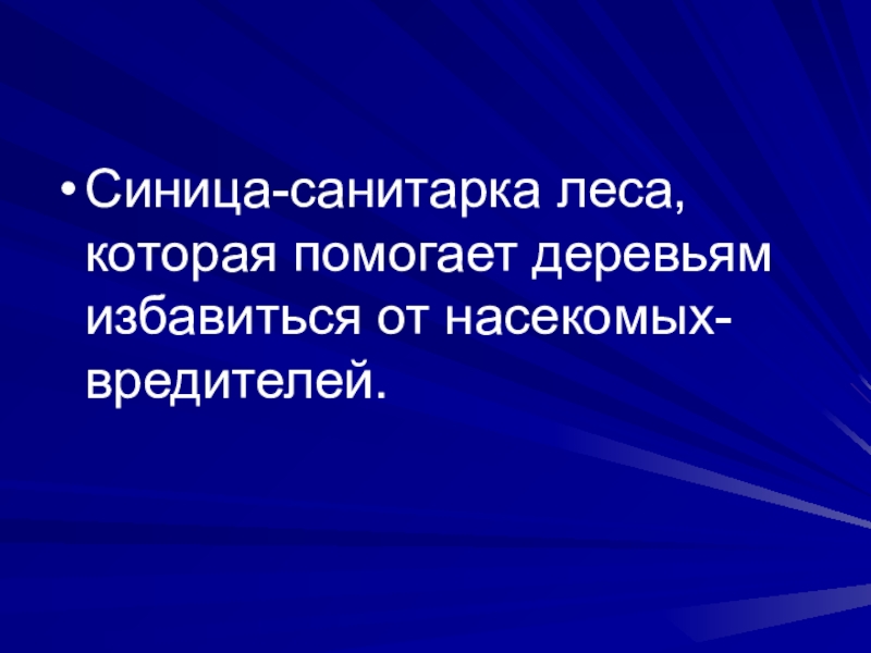 Слайд 2Синица-санитарка леса, которая помогает деревьям избавиться от насекомых-вредителей.