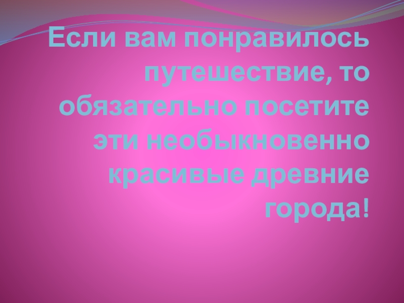 Слайд 17Если вам понравилось путешествие, то обязательно посетите эти необыкновенно красивые древние