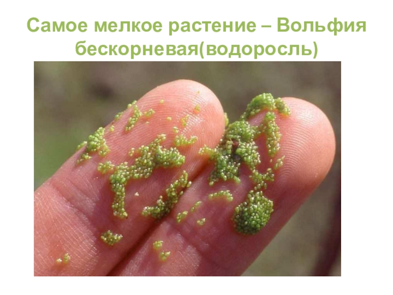 Слайд 31Самое мелкое растение – Вольфия бескорневая(водоросль)