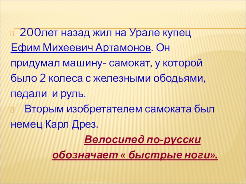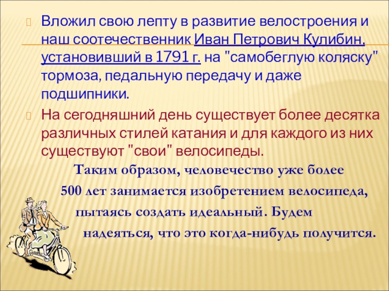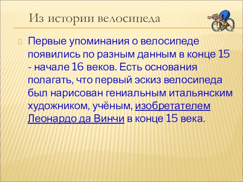 Из истории велосипеда