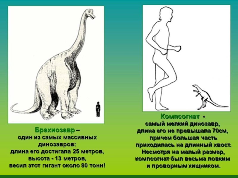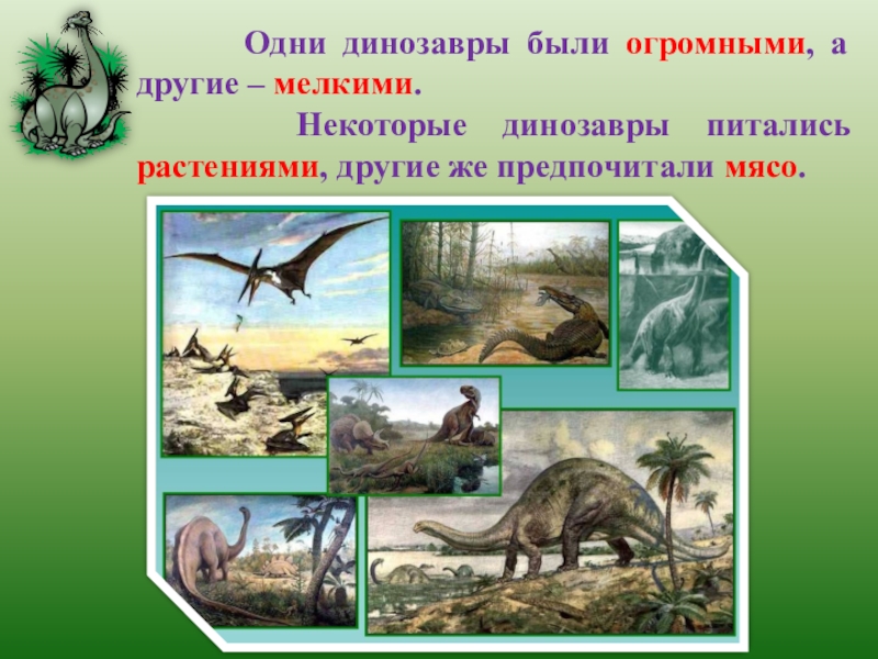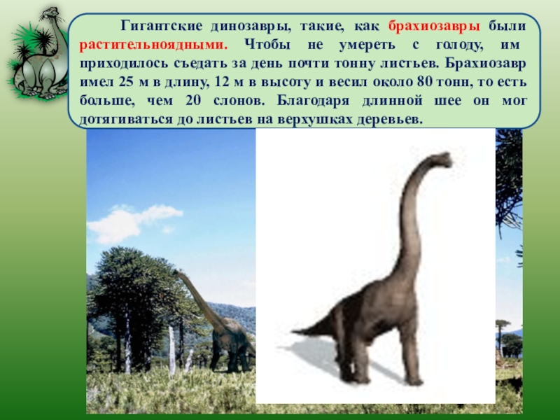Слайд 6 Гигантские динозавры, такие, как брахиозавры были растительноядными. Чтобы