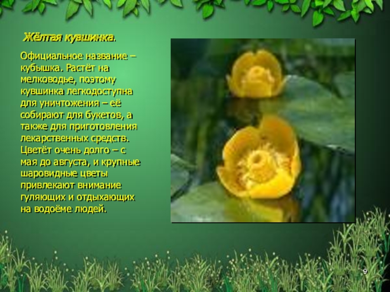 Слайд 9Жёлтая кувшинка.