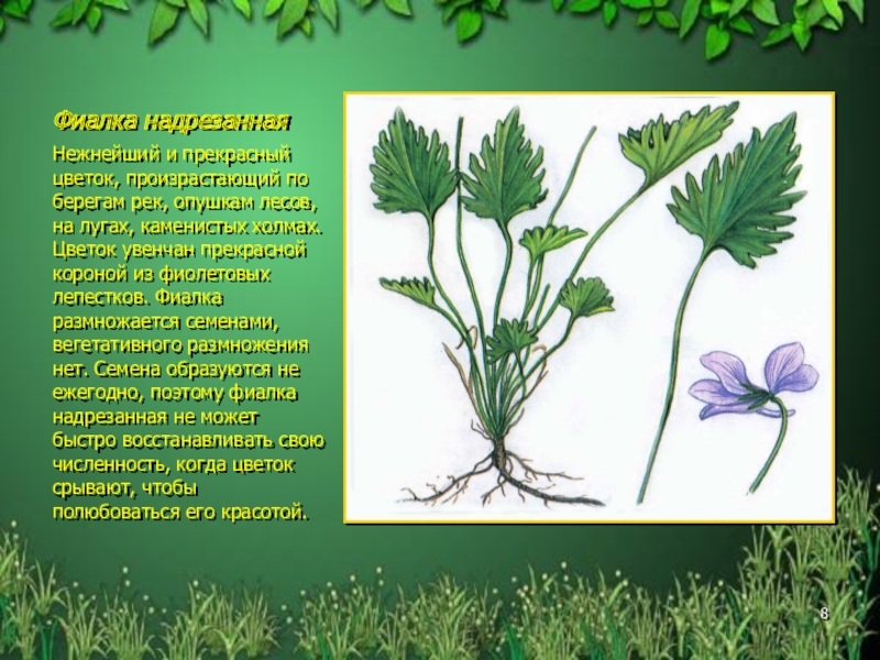 Слайд 8Фиалка надрезанная