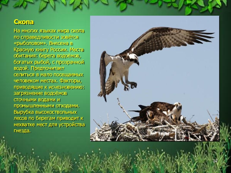 На многих языках мира скопа по справедливости зовётся «рыболовом». Внесена в