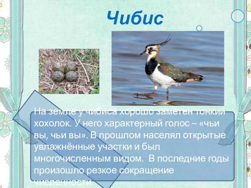 У него характерный голос – «чьи вы, чьи вы». В прошлом населял открытые увлажнённые участки и был многочисленным видом. В последние годы произошло резкое сокращение численности.