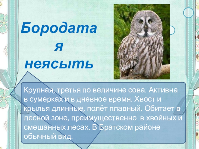 сумерках и в дневное время. Хвост и крылья длинные, полёт плавный. Обитает в лесной зоне, преимущественно в хвойных и смешанных лесах. В Братском районе обычный вид.