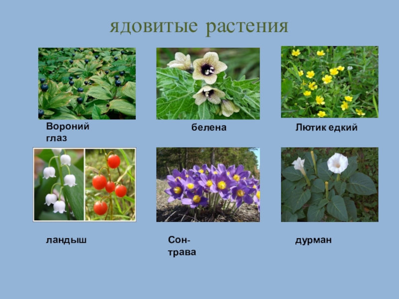 ядовитые растенияВороний глазбеленаЛютик едкийландышСон-травадурман