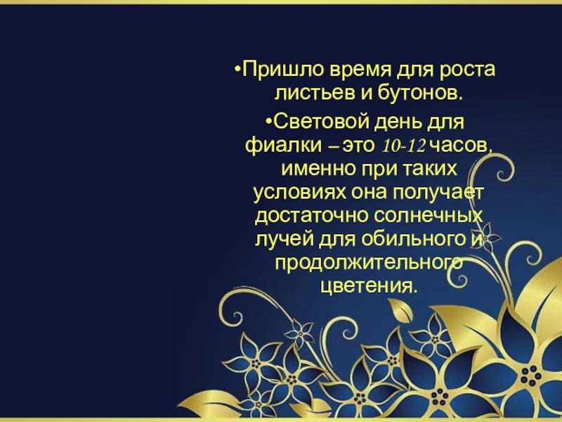 – это 10-12 часов, именно при таких условиях она получает достаточно солнечных лучей для обильного и продолжительного цветения.