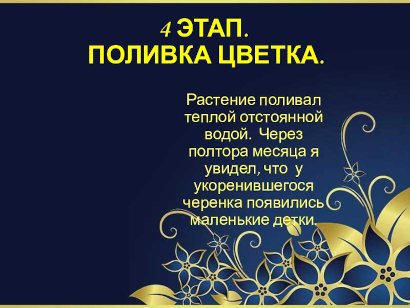 Растение поливал теплой отстоянной водой. Через полтора месяца