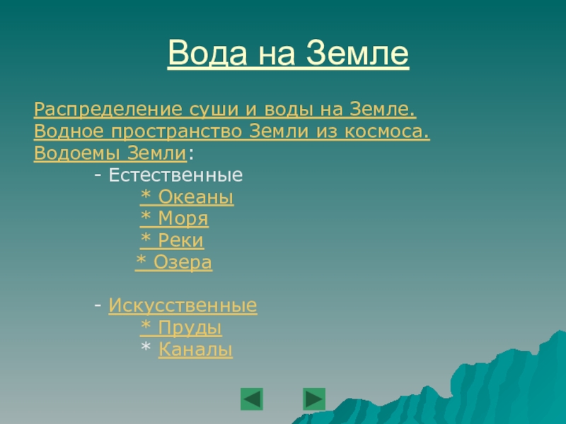 ПРЕЗЕНТАЦИЯВода на Земле