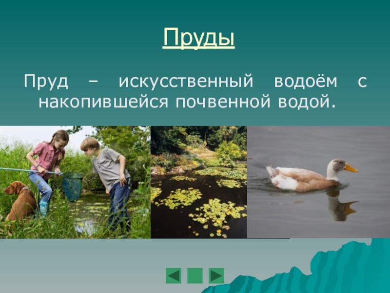 ПрудыПруд – искусственный водоём с накопившейся почвенной водой.