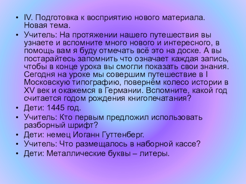Слайд 15IV. Подготовка к восприятию нового материала. Новая тема.