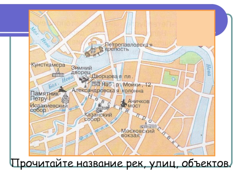 Слайд 12Прочитайте название рек, улиц, объектов.