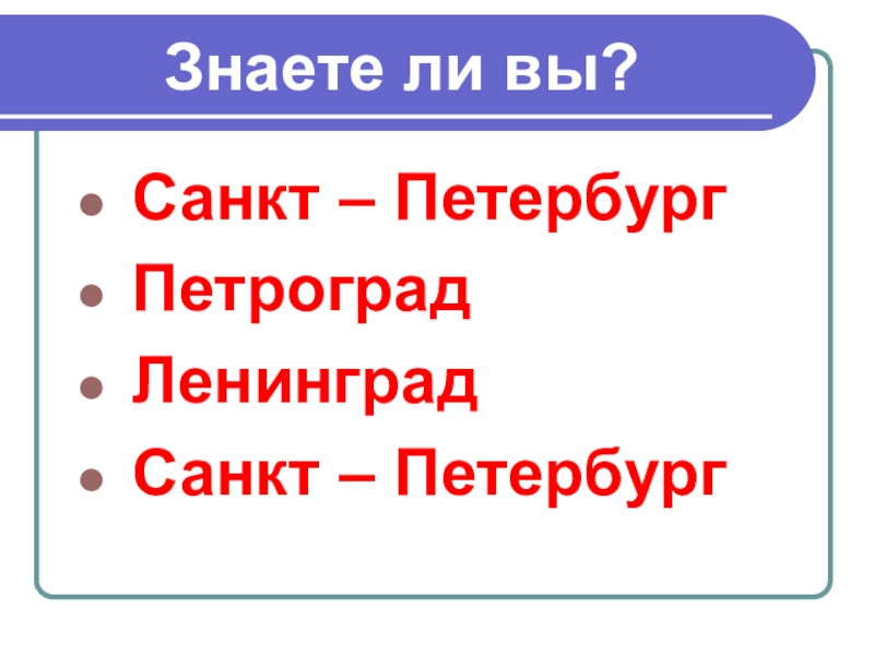 Санкт – Петербург Петроград Ленинград Санкт – ПетербургЗнаете ли вы?