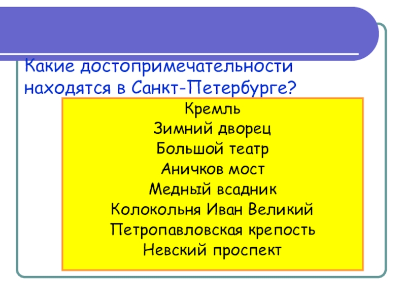 Слайд 43Какие достопримечательности находятся в Санкт-Петербурге?