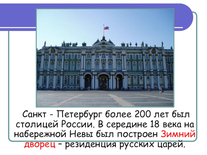 Слайд 14 Санкт - Петербург более 200 лет был столицей России. В середине