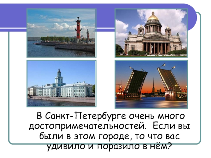 Слайд 13 В Санкт-Петербурге очень много достопримечательностей. Если вы были в этом городе,