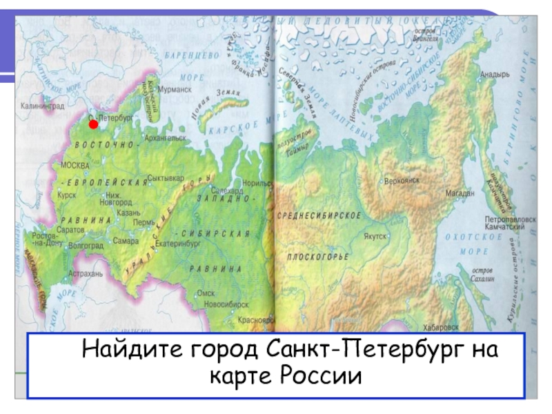 Слайд 4 Найдите город Санкт-Петербург на карте России
