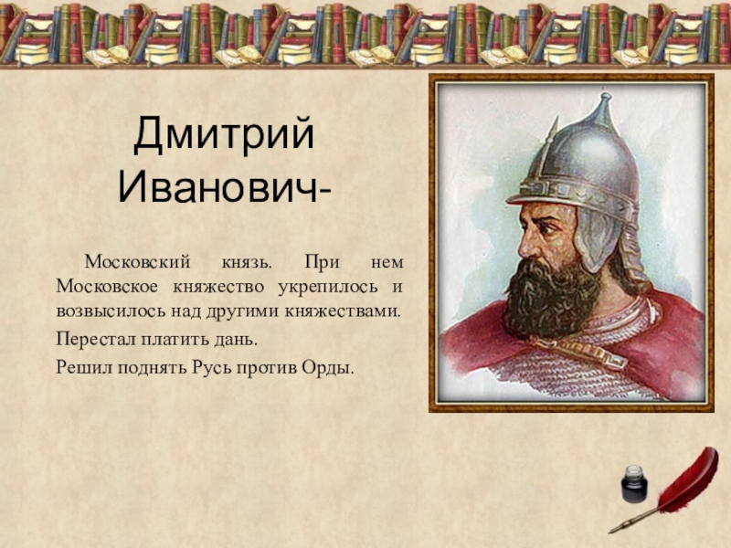 Слайд 6Московский князь Дмитрий Иванович хорошо понимал, что для успешной борьбы с
