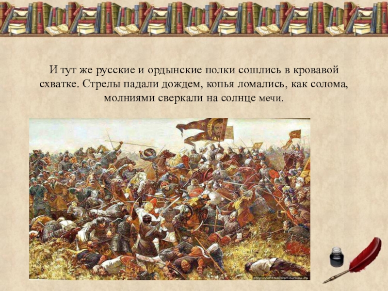 Слайд 8И тут же русские и ордынские полки сошлись в кровавой схватке.