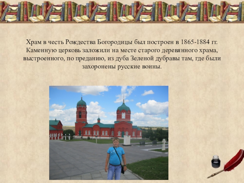 Слайд 14Храм в честь Рождества Богородицы был построен в 1865-1884 гг. Каменную