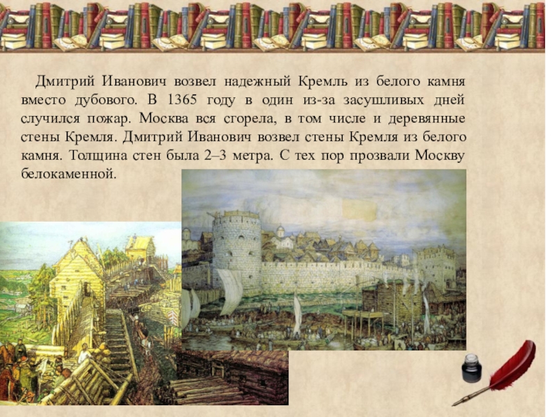 Слайд 3 Дмитрий Иванович возвел надежный Кремль из белого камня вместо дубового.