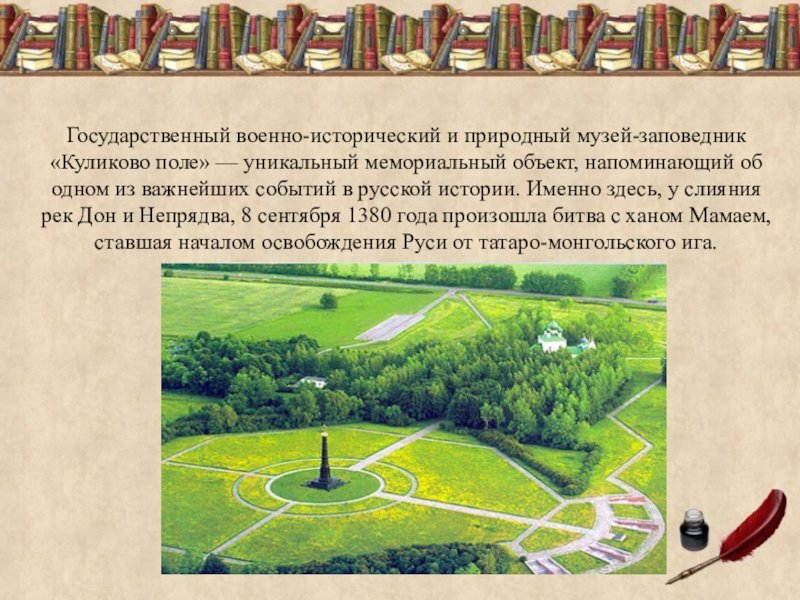 Государственный военно-исторический и природный музей-заповедник «Куликово поле» — уникальный мемориальный объект, напоминающий