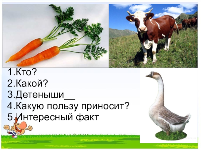 1.Кто?2.Какой?3.Детеныши__4.Какую пользу приносит?5.Интересный факт