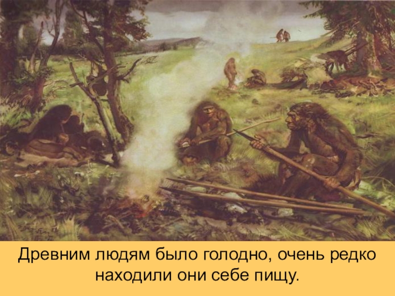 ещё не было городов, машин и книг, люди жили в пещерах. Они боялись огромных страшных хищников.