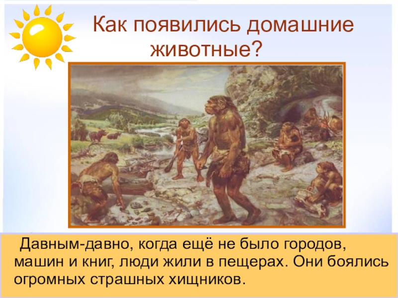 Как появились домашние        животные?	Давным-давно, когда ещё не было городов, машин