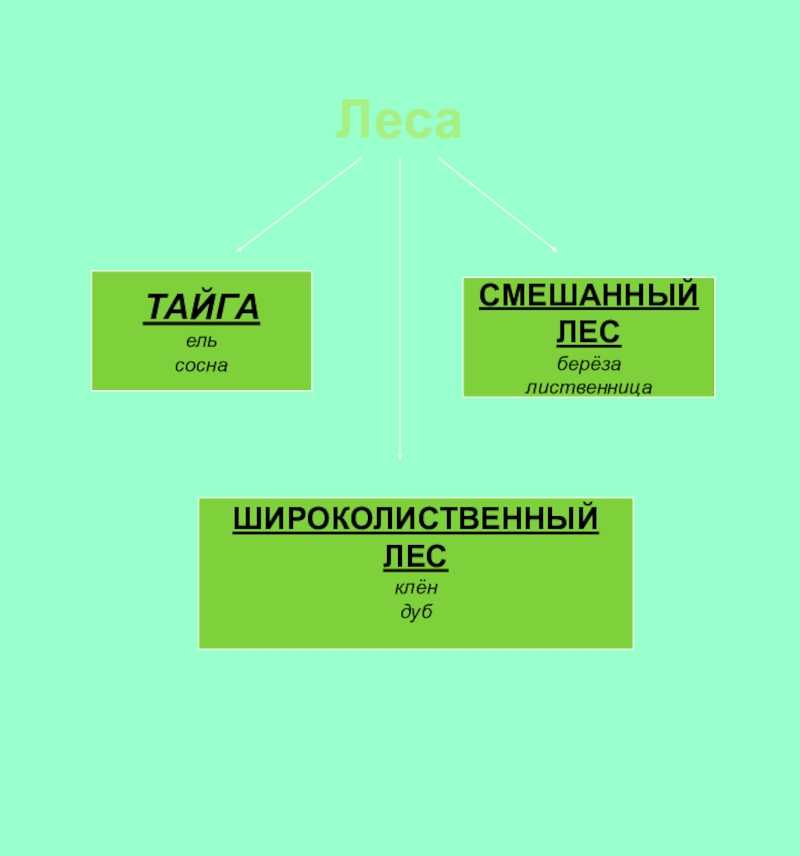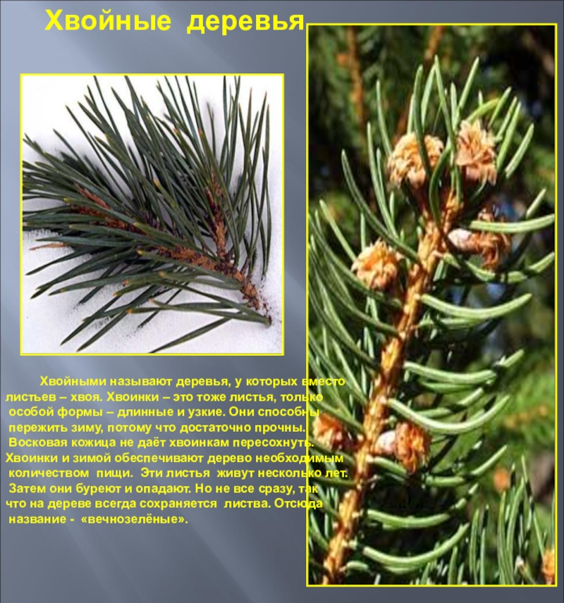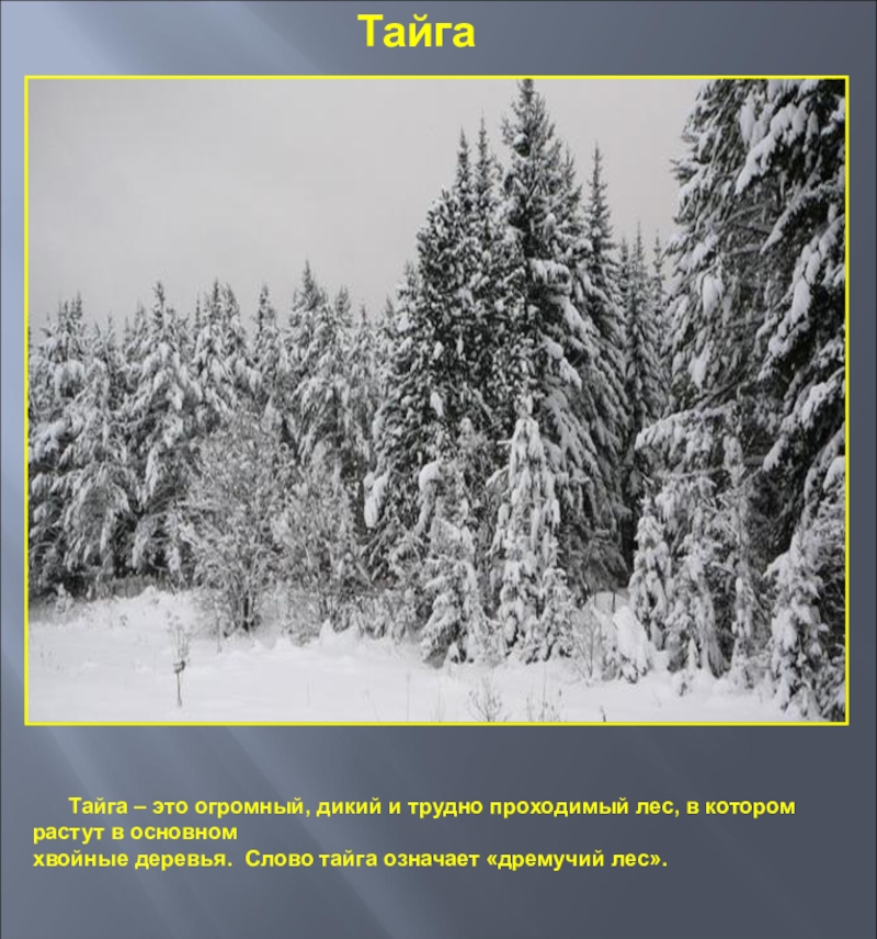 хвойные деревья. Слово тайга означает «дремучий лес».