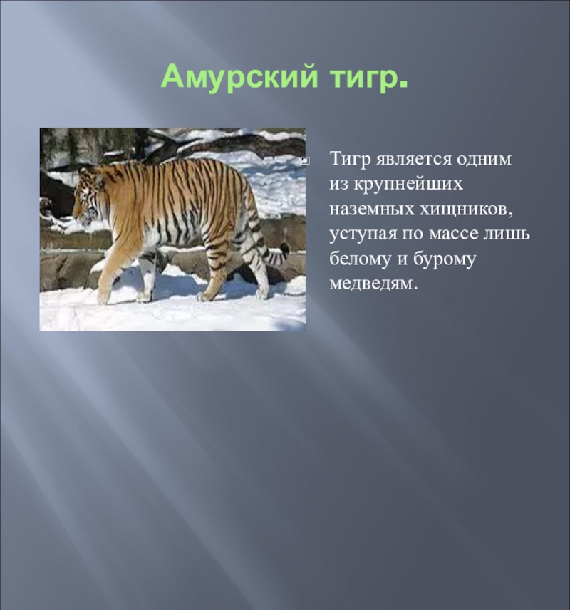 Тигр является одним из крупнейших наземных хищников, уступая по массе