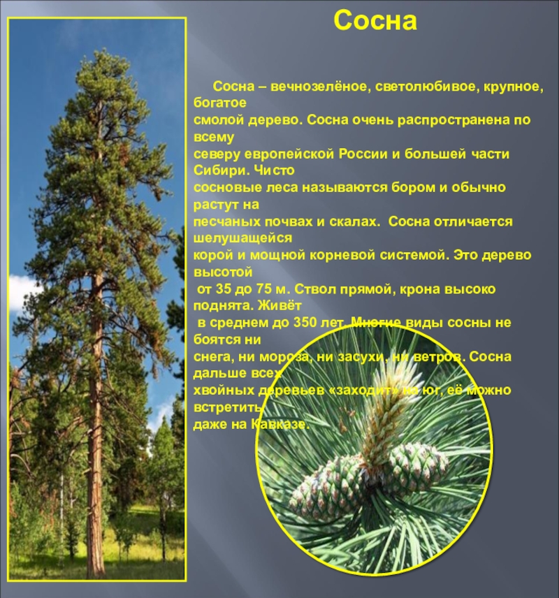 Сосна – вечнозелёное, светолюбивое, крупное, богатое